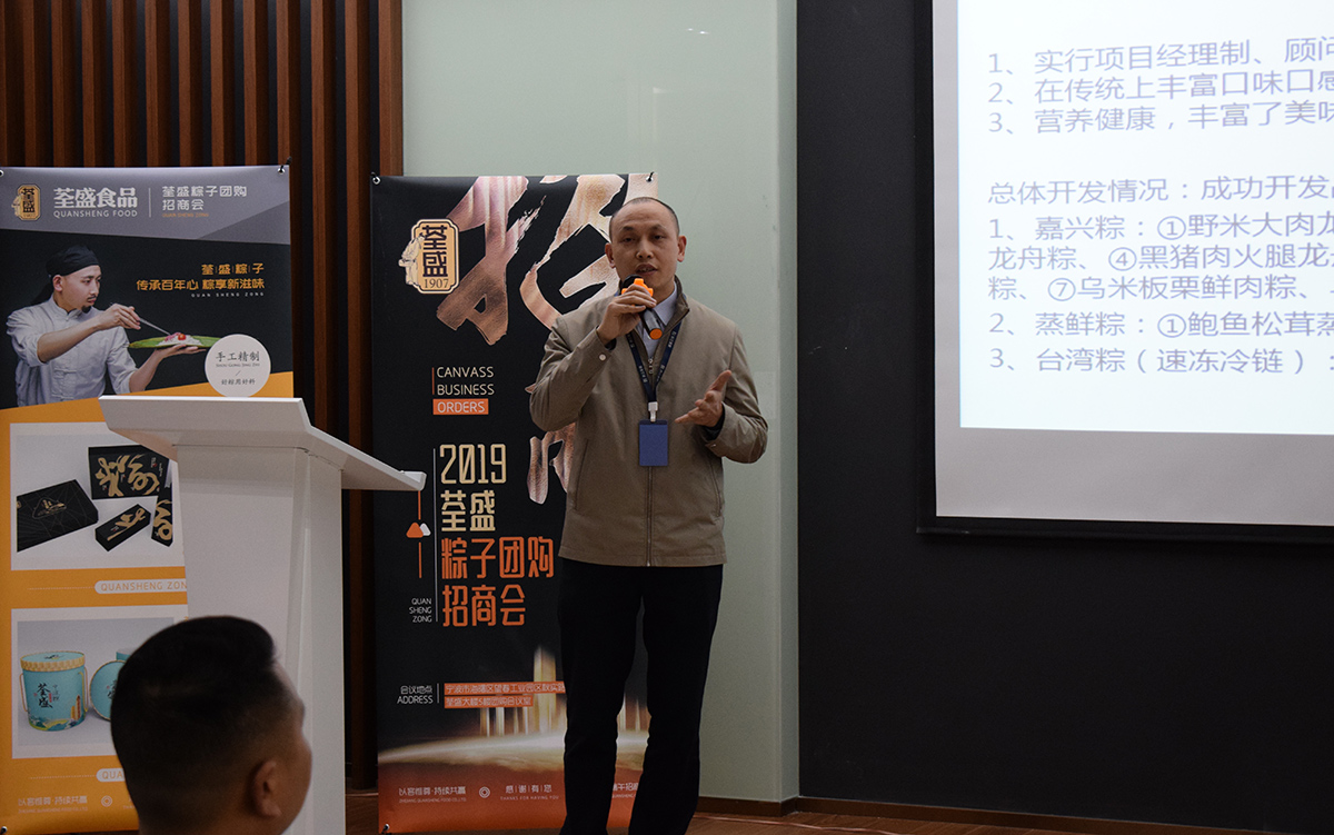 4月13日,荃盛食品“2019荃盛端午粽子團購招商會”,在寧波荃盛集團舉行。本次招商會得到荃盛公司領導的高度重視,荃盛食品營銷總監(jiān)楊剛、荃盛食品技術總監(jiān)陳剛、市場營銷部經(jīng)理李婷亞等以及多家荃盛食品合作團購商出席了此次團購招商會。本次團購招商會旨在促進2019荃盛粽子市場團購銷售團隊的真誠溝通、友好合作,建立穩(wěn)固雙贏的有競爭力的合作政策體系。