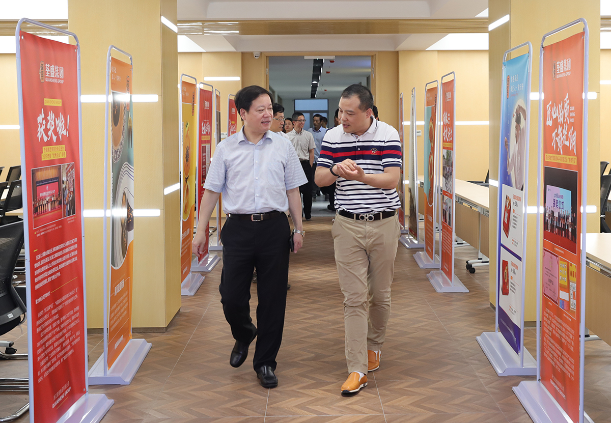陳仲朝常務(wù)副市長(zhǎng)在荃盛集團(tuán)董事長(zhǎng)戴東堅(jiān)的陪同下,考察了“荃盛探夢(mèng)工廠”,聽(tīng)取了荃盛集團(tuán)發(fā)展歷程及規(guī)劃。