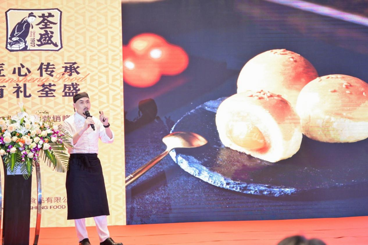 高光時(shí)刻,荃盛營(yíng)銷總監(jiān)楊剛先生介紹了荃盛2022年 “大師系列、燕窩系列、流心系列”等系列爆品禮盒,滿足了高端節(jié)禮、商務(wù)答謝、員工福利等多種節(jié)慶場(chǎng)景。荃盛品牌代言人、技術(shù)總監(jiān)陳剛先生為經(jīng)銷商介紹了“黑松露流心蛋黃酥、黑松露流心奶黃月、荃盛金頂酥(大浙餅)、檸檬奶黃燕窩星球酥”等重磅新品。席間,嘉賓們沉浸在美人、美食、美景中,對(duì)產(chǎn)品口味贊不絕口。