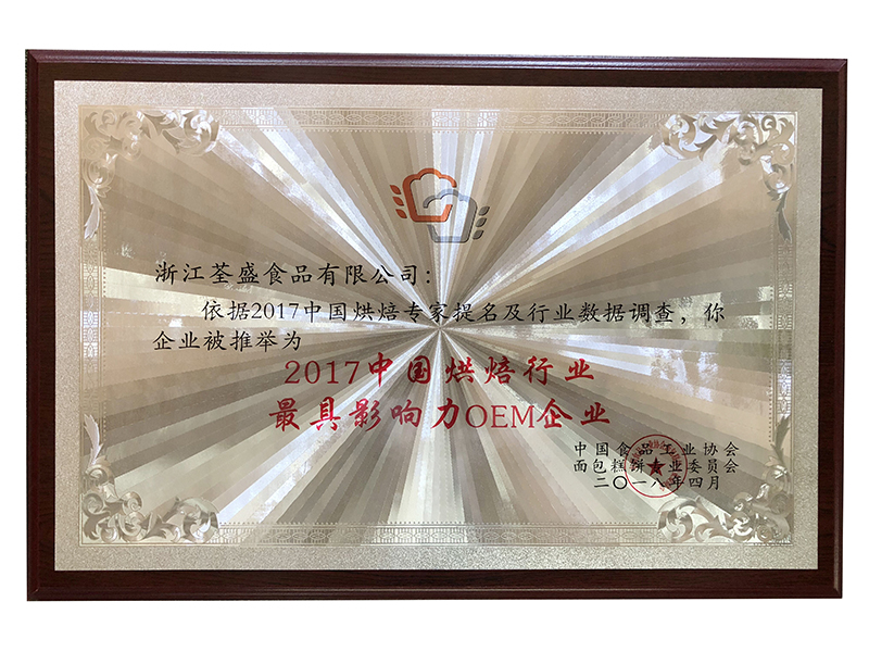 荃盛食品響應國家“十三五”國家食品安全規(guī)劃,以保障食品安全,推動食品安全現(xiàn)代化治理體系建設,促進食品產業(yè)發(fā)展,推進健康中國建設、增進人民福祉為重要目標,不斷加大資金投入引進先進設備,科學規(guī)劃車間建設,嚴格執(zhí)行5S管理方法,不斷提升加強企業(yè)管理。在荃盛集團領導的帶領和荃盛員工的共同努力奮斗下,荃盛月餅市場份額不斷攀升,品牌建設不斷擴大發(fā)展,與全國多家馳名大集團企業(yè)達成定制合作。尤其剛剛由中國食品工業(yè)協(xié)會、面包糕餅專業(yè)委員會聯(lián)合頒發(fā)的“2017中國烘焙行業(yè)最具影響力OEM企業(yè)”的獎牌,更是是對荃盛月餅的認可。