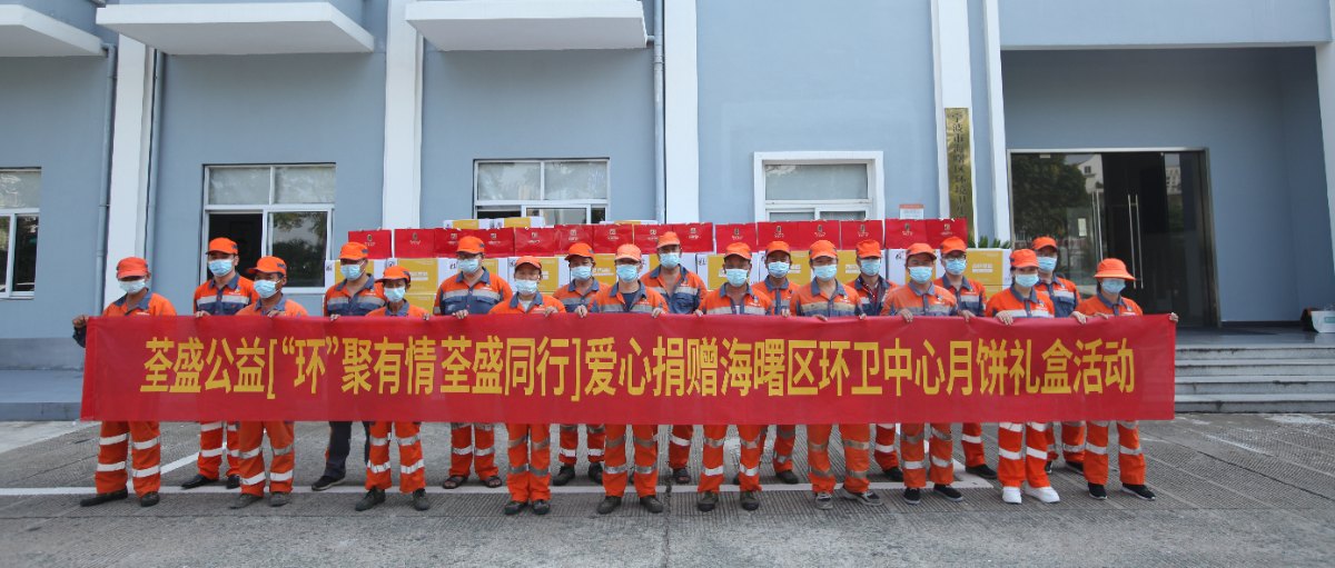 9月8日,荃盛食品公益再出發(fā),舉辦“環(huán)聚有情 荃盛同行——與海曙環(huán)衛(wèi)工人共度中秋佳節(jié)”送關(guān)愛慰問活動(dòng),為寧波市海曙區(qū)1360名一線環(huán)衛(wèi)工人送上荃盛月餅和中秋祝福。