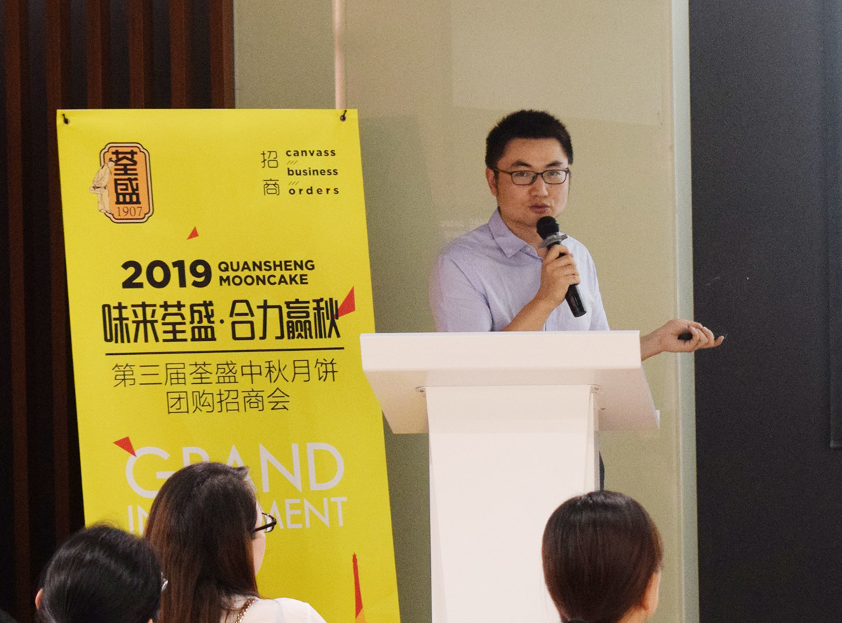 荃盛營銷總監(jiān)楊剛首先通過荃盛集團近20年公司成長發(fā)展情況,并就未來的消費趨勢對荃盛的發(fā)展前景做了展望和要求。荃盛集團至今已成為了600+家中國高端品牌客戶月餅的共同選擇,品牌強大的背后,是每位客戶朋友一個個訂單的信任、寬容和幫助。